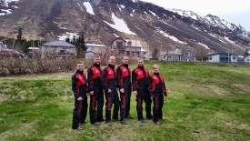 Hópurinn sem hélt til Ísafjarðar til að sitja Landsþing og taka þátt í Björgunarleikum átti frábæra helgi í fínasta veðri á Ísafirði. Við sendum tvö lið á Björgunarleikana og annað þeirra, "Made in sveitin" varð í 5.-6. sæti af 18 liðum sem verður að teljast góður árangur fyrir sveitina okkar. Sýnum það og sönnum enn og aftur að við erum framarlega í þessum málum og þekkingin og samheldnin hjá okkur er mikil. Svo var liðið auðvitað í svo flottum göllum frá Jötunn vélum, sem hafa eflaust hjálpað til! Í hinu liðinu okkar voru margir sem höfðu aldrei tekið þátt í Björgunarleikum áður en stóðu sig engu að síður vel og höfðu upp úr þessu mikilvæga reynslu. Þau lentu í 17. sæti. Í því liði voru Ólína, Íris, Bjarney, Gulla, Hreiðar og Sigmar (sjá mynd neðst).