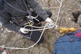 Dagurinn var notaður í félagabjörgun í klifri, þar sem gert var ráð fyrir að menn væru tveir á ferð og lítill búnaður. Við byrjuðum auðvitað í morgun með því að hlusta á fyrirlestra og var farið í gegnum krafta sem hafa áhrif á akkeri. Eftir það fórum við í bílageymsluna og renndum í gegnum vinnubrögð í tveggja manna félagabjörgun.