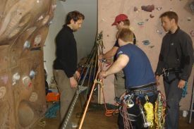 Í hádeginu var stefnan tekin í heimahaga hans Gunnars Vilhjálms í Akrafjalli. Þar gengum við upp fyirr fyrstu kletta og settum upp aðgerð sem fólst í því að láta björgunarmann og sjúkling í börum síga fram af brún og niður klettavegg og síðan þurfti að breyta sigkerfinu yfir í dobblunarkerfi og hífa björgunarmann og sjúkling upp aftur.