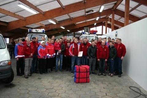 Það voru yfir 30 manns sem komu til að afhenda gjöfina og tók stjórn Dalbjargar á móti þeim. Gjöfin er sérlega glæsileg, en um er að ræða sérstaka grjónadýnu þar sem unnt er að búa um sjúkling til flutnings og hífa upp í þyrlu án þess að nauðsynlegt sé að nota skel eða annan búnað samhliða.