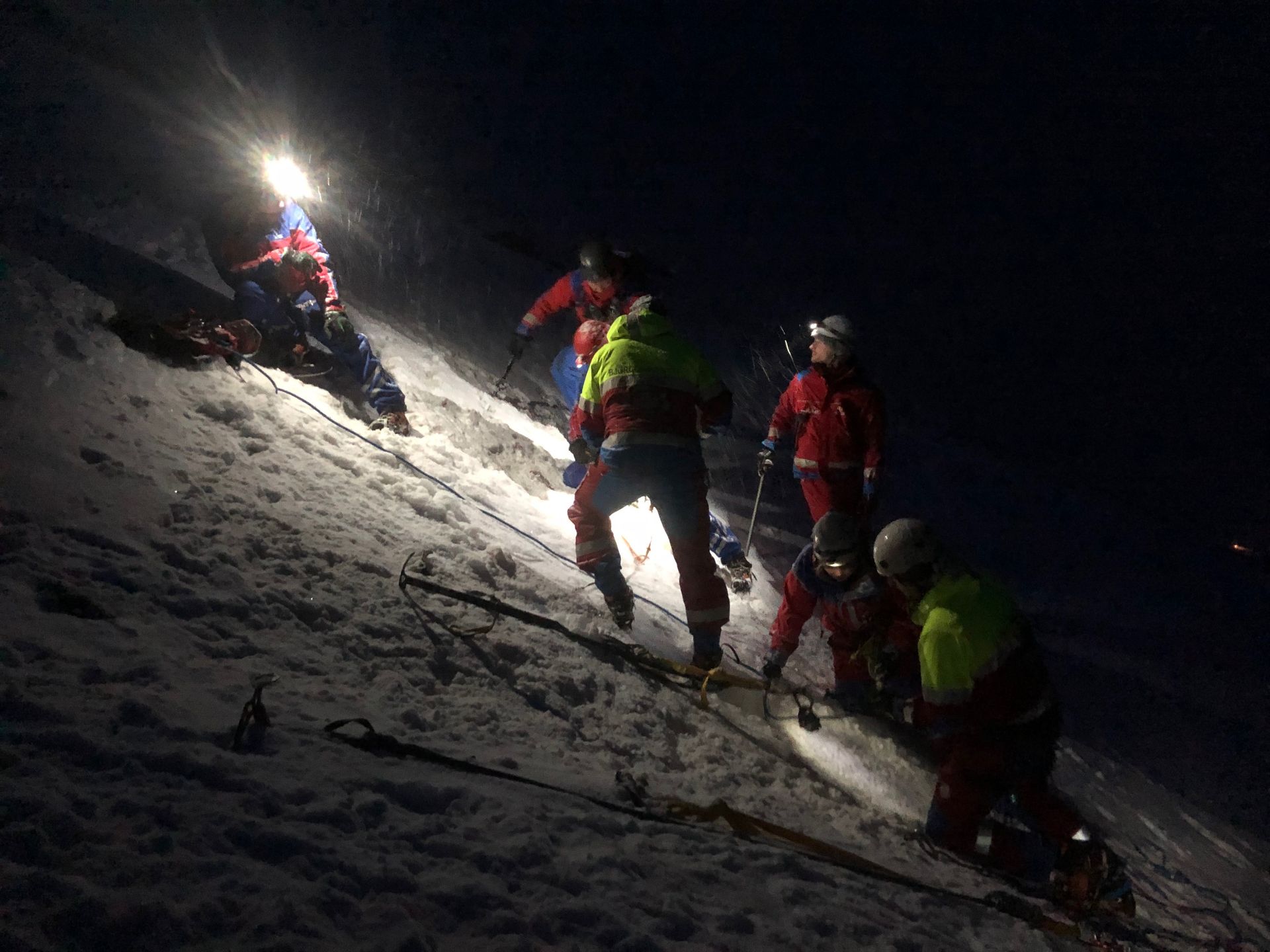 Fjórir félagar með reynslu og menntun í fjallabjörgun héldu af stað ásamt bílstjóra. Þyrla Landhelgisgæslunnar ásamt björgunarsveitum kom fljótlega annarri konunni niður af fjallinu. Setja þurfti upp tryggingar niður alla fjallshlíðina til að flytja hina konuna, tryggða í línu, að sjúkrabíl. Aðgerðin var stór og krefjandi en gekk vel. Eftir að settar höfðu verið upp tryggingar tók 2klst að flytja konuna niður.
