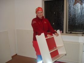 Á annan tug björgunarsveitarmanna vann við að forða búslóð íbúanna úr húsinu út í bíla og flytja