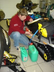 Í gærkvöldi unnu Smári, Pétur og Palli við að setja talstöð og loftnet á annann sleðann og vindlakveikjara í báða